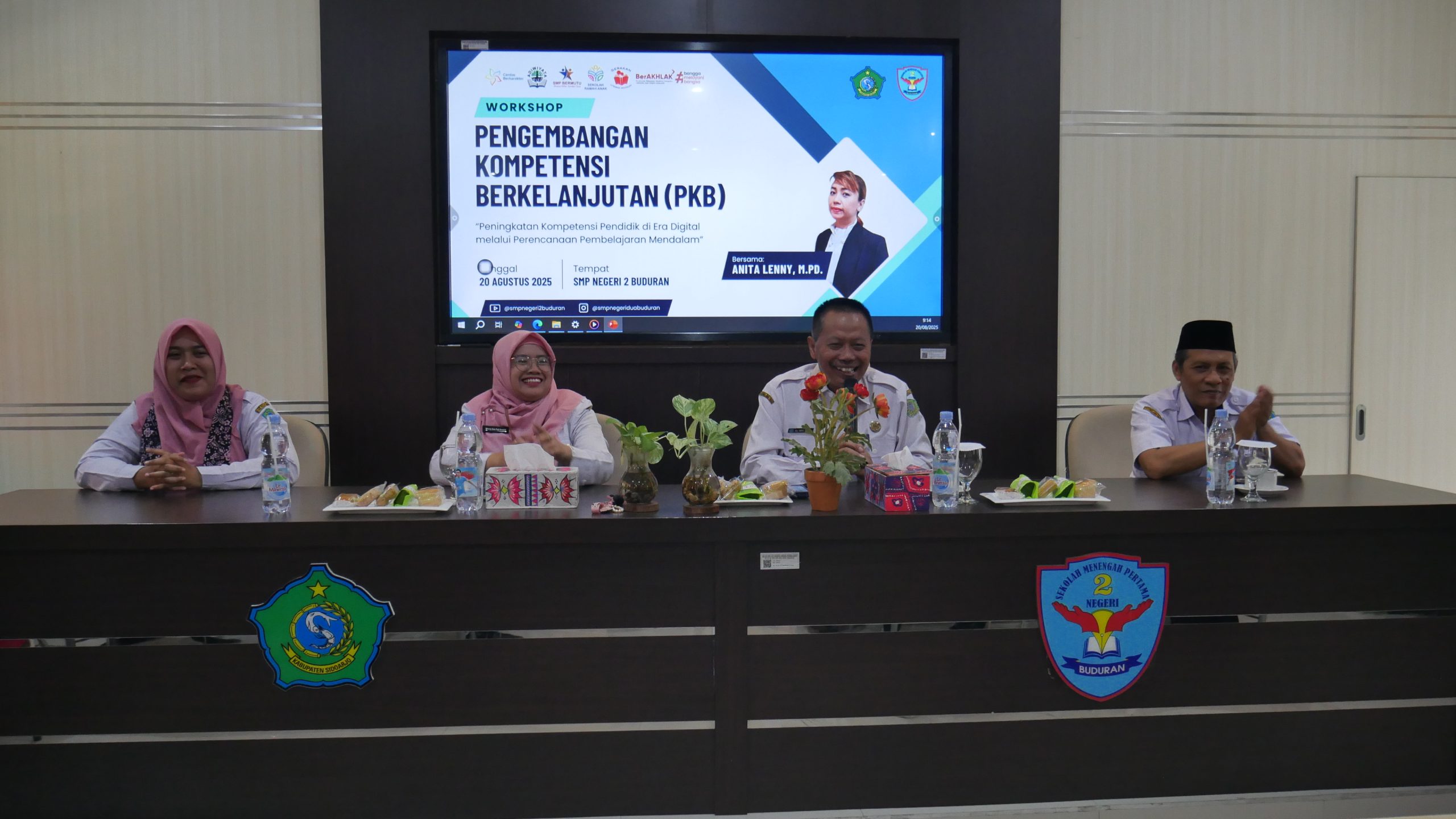 Sidoarjo – SMP Negeri 2 Buduran kembali melaksanakan kegiatan Pengembangan Kompetensi Berkelanjutan (PKB) pada Rabu, 20 Agustus 2025 bertempat di Laboratorium IPA dengan tema “Peningkatan Kompetensi Pendidik di Era Digital melalui Perencanaan Pembelajaran Mendalam”. Kegiatan yang berlangsung sejak pukul 09.00 hingga 14.30 WIB ini diikuti oleh 42 pendidik SMPN 2 Buduran.
