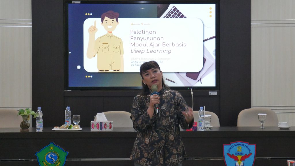Acara diawali dengan sambutan dari Dr. Tirto Adi, M.Pd., Kepala Dinas Pendidikan dan Kebudayaan Kabupaten Sidoarjo. Dalam sambutannya beliau menekankan pentingnya formulasi 8-3-3-4 dalam penerapan pembelajaran mendalam yang relevan dengan kebutuhan pendidikan masa kini. Setelah itu, Kepala SMPN 2 Buduran, Ibu Wenny Arie Puji Susanti, S.Pd., M.Pd., juga memberikan arahan serta motivasi kepada seluruh pendidik agar terus mengembangkan kompetensi di era digital.