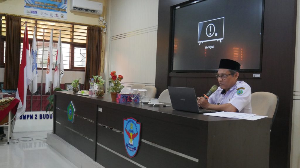 Kegiatan juga dihadiri oleh Drs. Lambang Kurniawan, M.Pd., selaku pengawas SMPN 2 Buduran. Beliau turut memberikan evaluasi sekaligus refleksi sebagai penutup sesi materi. Kehadiran beliau memberikan semangat tambahan bagi para pendidik untuk terus berinovasi dalam pembelajaran.