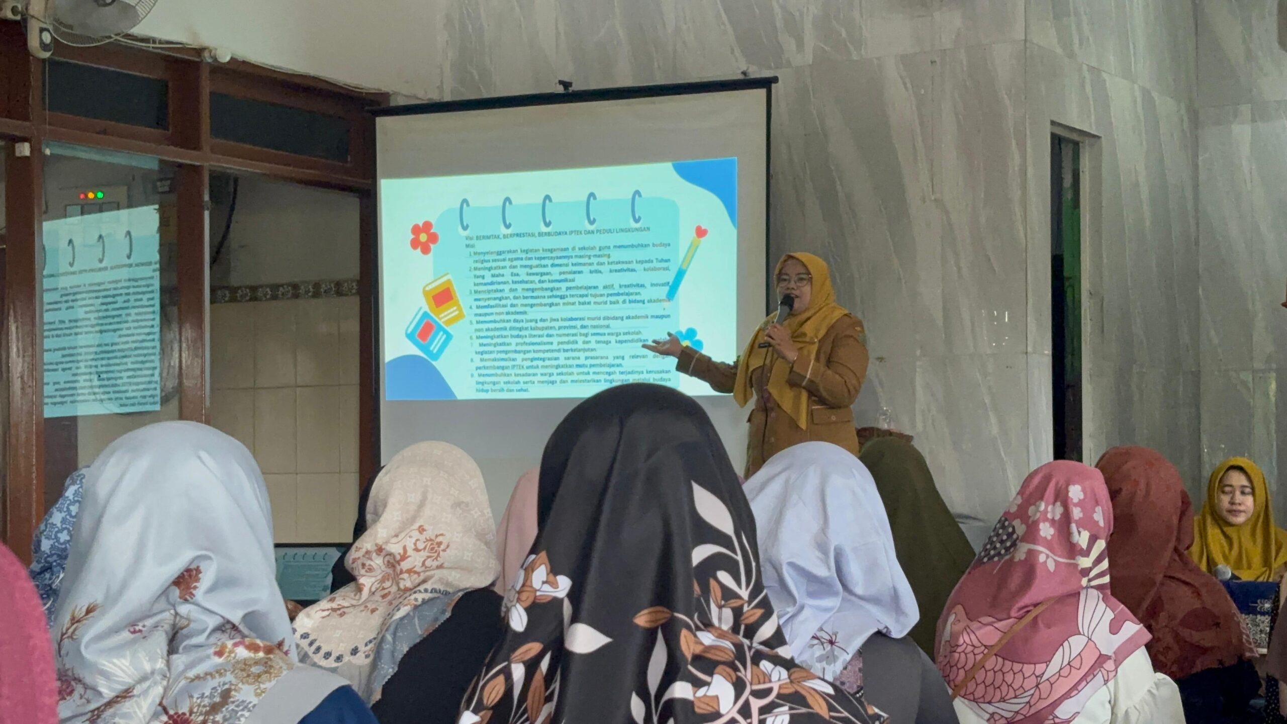 Sesi utama disampaikan oleh Ibu Wahyu Rahmawati, S.Kom., yang menjelaskan berbagai program sekolah untuk kelas VIII. Mulai dari kegiatan akademik, penguatan karakter, hingga program unggulan seperti projek penguatan dimensi profil lulysan, kegiatan literasi numerasi, dan pengembangan potensi siswa di bidang digital dan lingkungan.